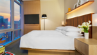 - Stunning views: Gaze out at the city lights from the rooftop bar and through your guestroom’s floor-to-ceiling windows.