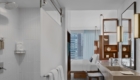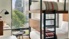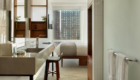 King bedded room on a mid-level floor with floor to ceiling windows looking out on Midtown Manhattan.Queen Room – Terrace